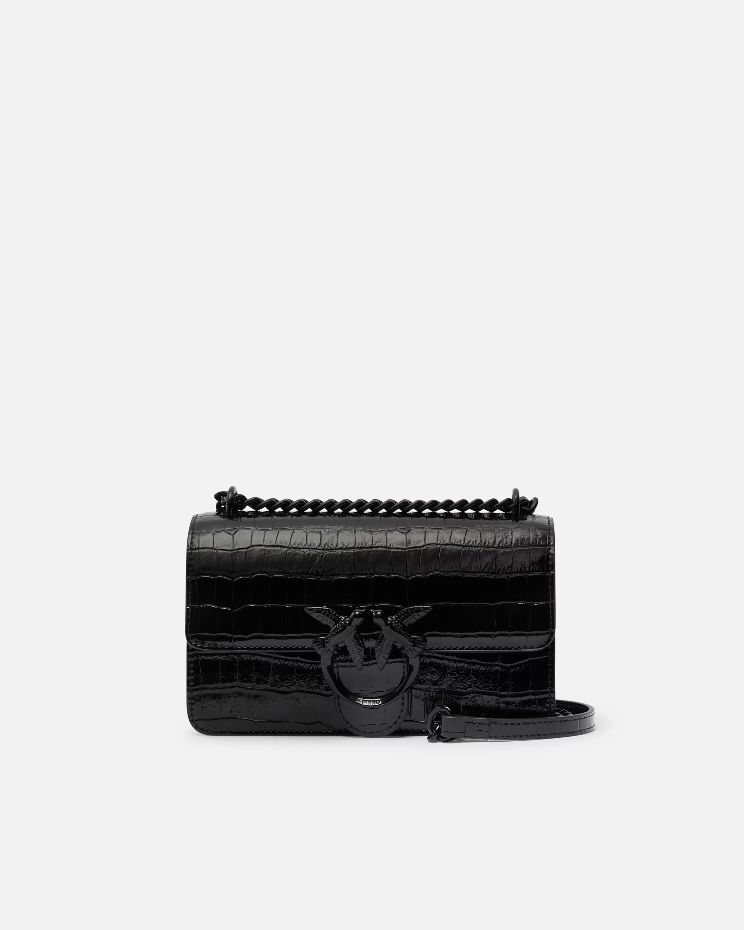 PINKO Galleria Mini Love Bag Top Handle Light in laminated reptile-print leather