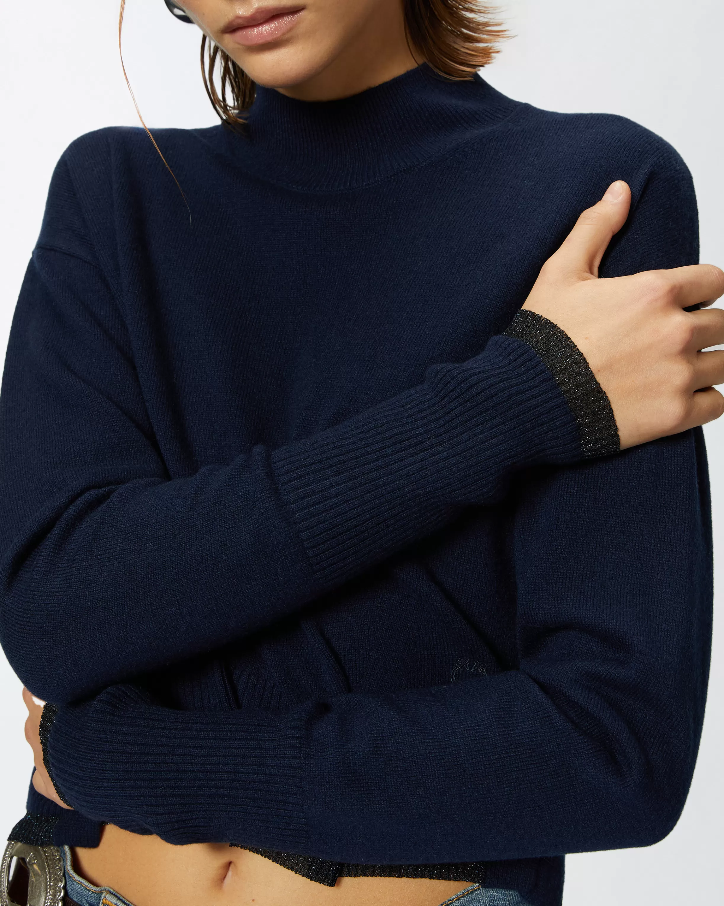 Be the first to review “PINKO Cashmere-blend turtleneck with metallic cuffs” Cancel reply