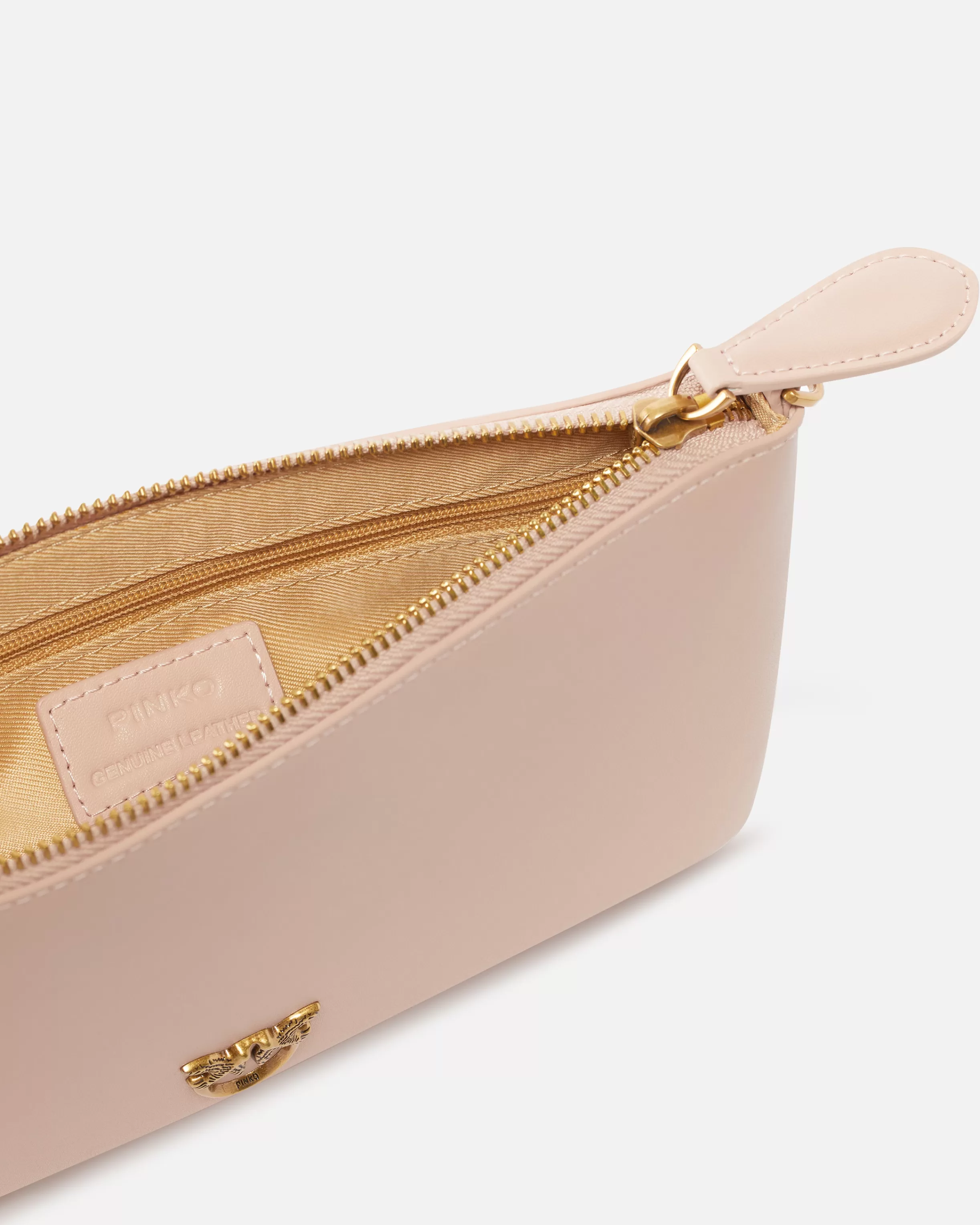 Flat shoulder bag in soft, silky leather. Love Birds Diamond Cut plaque embellishment. Lined with polycotton and complet…