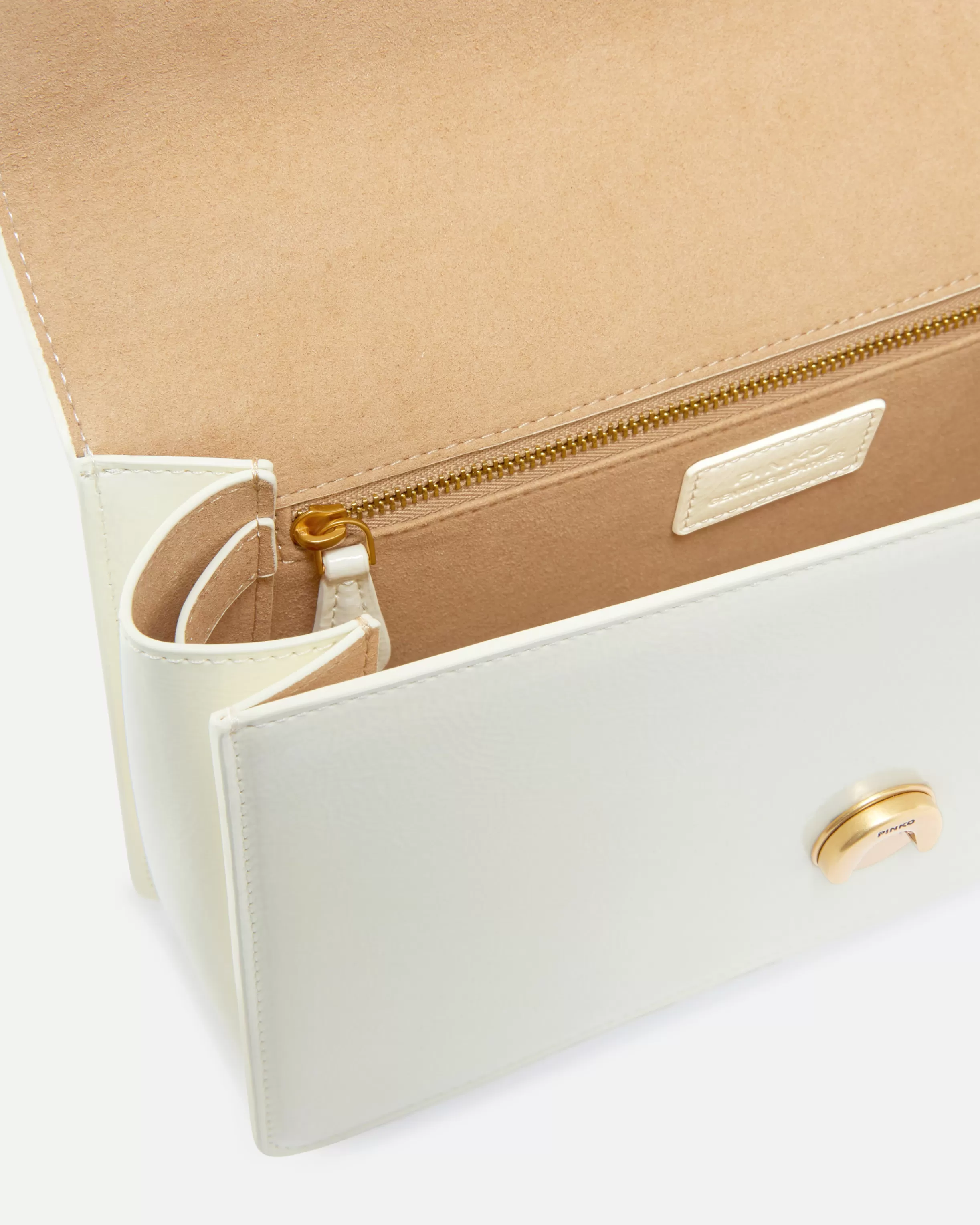 Love Bag Light crossbody bag in leather-effect material made from recycled fibres with naplak patent-effect finish and deconstructed design that softens the structure. The flap closure is accompanied by a Love Birds Diamond Cut metal buckle whose enamel coating matches the colour of the bag, while the microsuede-lined interior features a practical zipped slip pocket. The bag is complete with a metal chain strap with adjustable shoulder pad for greater comfort when worn. In addition, the 20th of May marks one of China’s five days celebrating love. Activate your PINKO bag: verify the authenticity of your product and access a personalised experience by scanning the Love Birds embroidery on the back of the bag with your smartphone!
