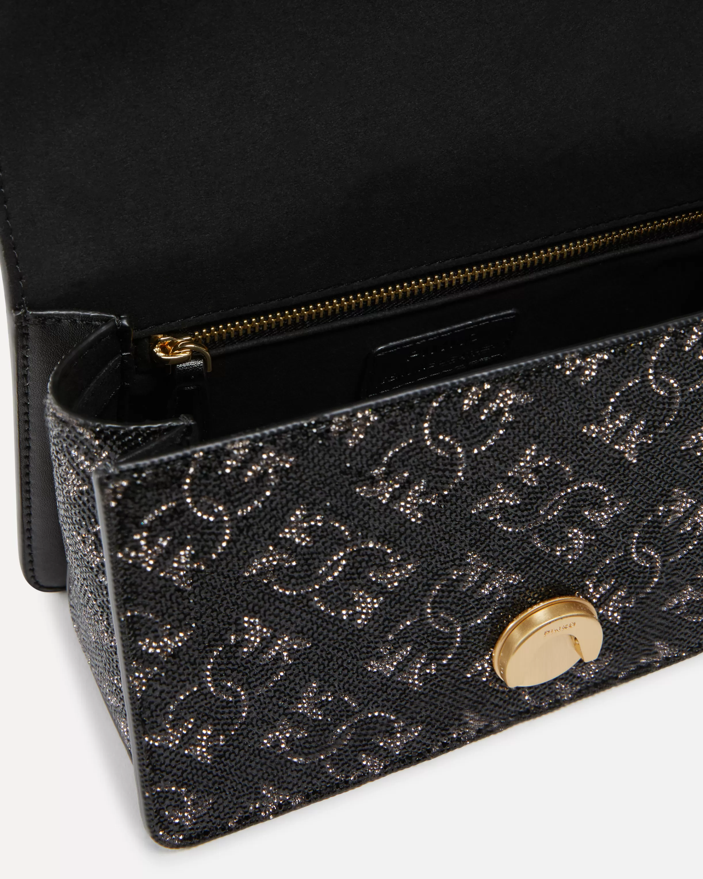 PINKO Mini Love Bag leather crossbody bag with Monogram rhinestone