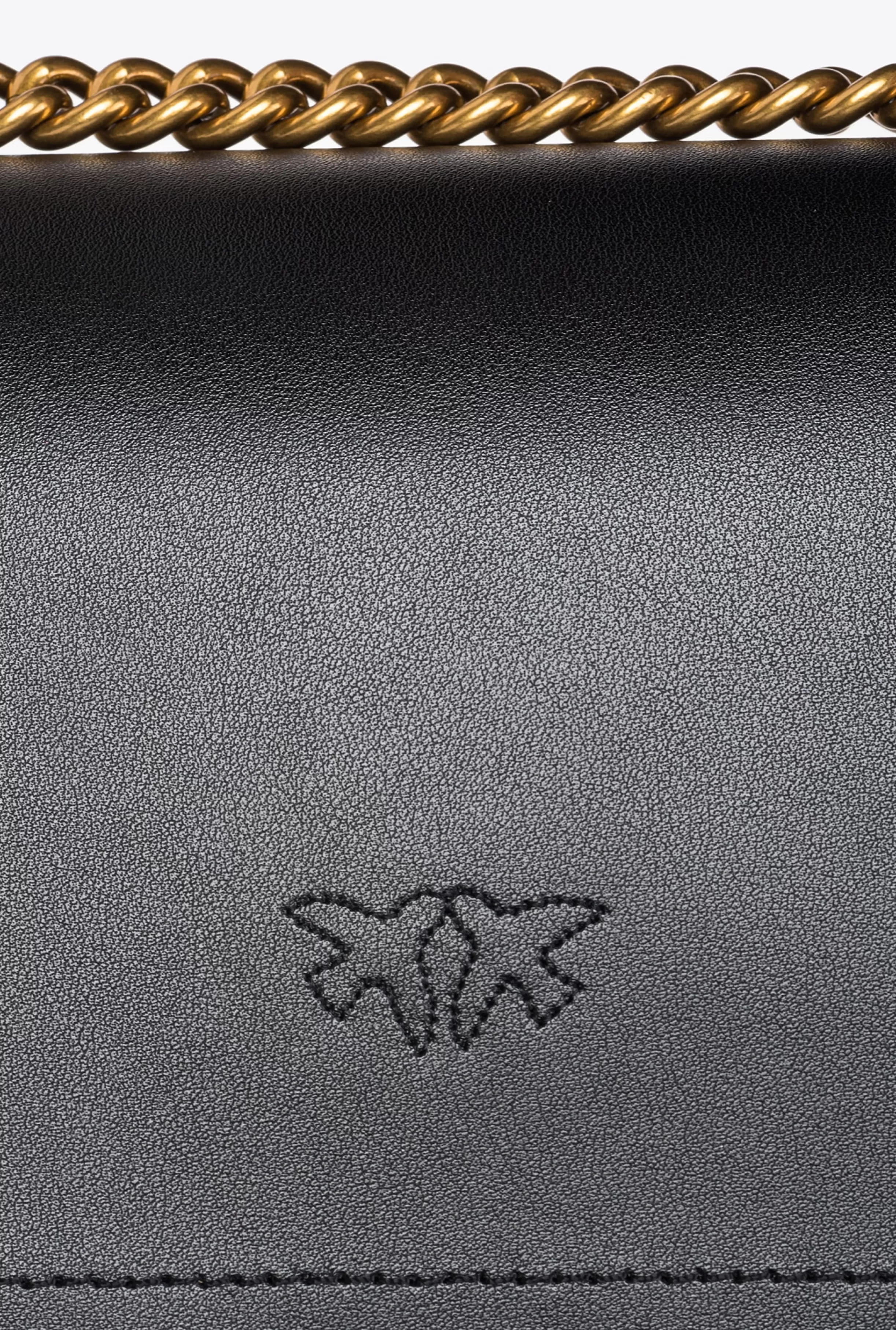 Mini Love Bag One in soft, silky leather. The fastening is embellished with the iconic metal Love Birds Diamond Cut buckle. The accessory boasts a suede microfibre-lined interior, complete with a zipped centre divider pocket and leather slip pocket. The shoulder strap combines the classic round-link chain with a practical, adjustable leather shoulder pad.