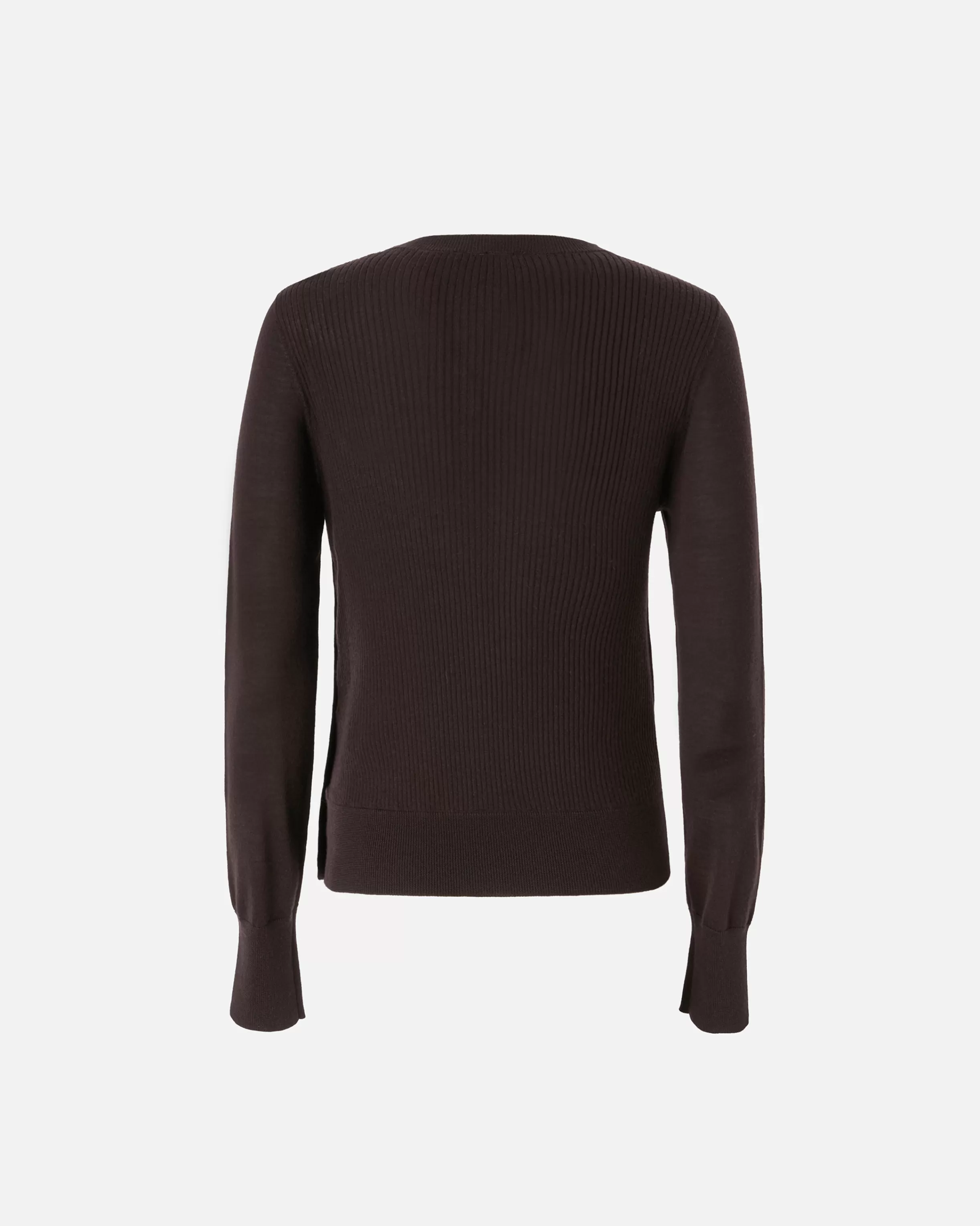 Long-sleeved crew-neck sweater made from soft, lightweight pure wool yarn. The buttons at the side—which can be unfastened to create a more or less open slit based on your style needs—give the classic look of this sweater a special twist.